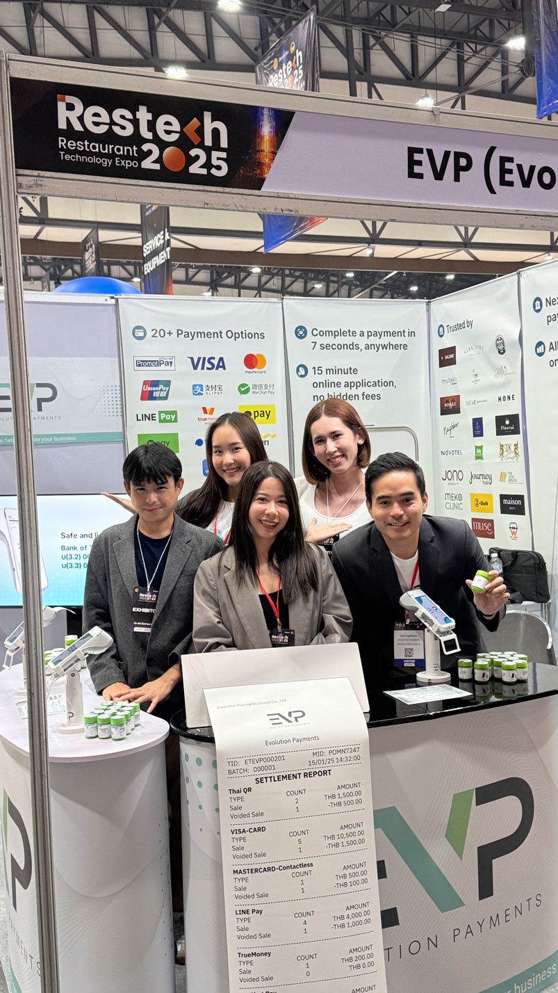 EVP เข้าร่วมงาน Food & Hospitality Thailand 2025 ที่ศูนย์การประชุมแห่งชาติสิริกิติ์ กรุงเทพฯ พร้อมนำเสนอระบบ POS แบบครบวงจรสำหรับโรงแรม รีสอร์ท และผู้ประกอบการ F&B โดยเราได้ชูจุดเด่นด้านการชำระเงินที่รวดเร็ว ยืดหยุ่น และรายงานที่โปร่งใส ขอบคุณทุกท่านที่แวะมาเยี่ยมบูธของเรา — เรารู้สึกยินดีและตื่นเต้นที่จะเติบโตร่วมไปกับชุมชนธุรกิจการบริการของไทย